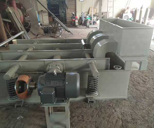 筛框的振动是装在主轴上的两个偏心轮来实现的。主轴由挠性联轴节与电动机直接相联,电动机带动主轴运转时通过主轴上的两个偏心轮使筛框处于振动状态。减振装置是由四根弹簧把筛框支撑起来,具有结构简单、实用性能好等优点。本机可分为左右手机,用户可根据实际情况调整。(面向排渣端,电动机在浆槽左侧为左手机,电动机在右侧为右手机。