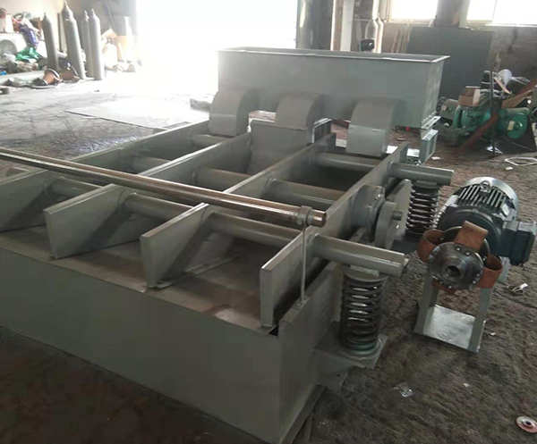 筛框的振动是装在主轴上的两个偏心轮来实现的。主轴由挠性联轴节与电动机直接相联,电动机带动主轴运转时通过主轴上的两个偏心轮使筛框处于振动状态。减振装置是由四根弹簧把筛框支撑起来,具有结构简单、实用性能好等优点。本机可分为左右手机,用户可根据实际情况调整。(面向排渣端,电动机在浆槽左侧为左手机,电动机在右侧为右手机。